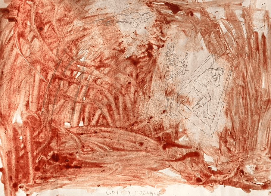 After the start of the full-scale invasion, she began creating drawings with her own blood to convey the unfamiliar physical pain of the new reality.