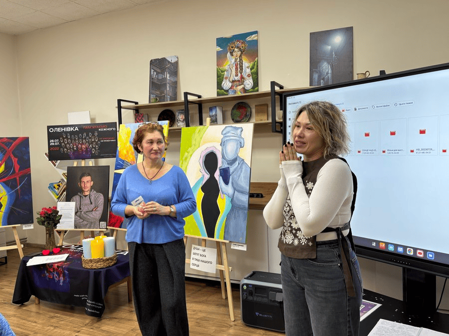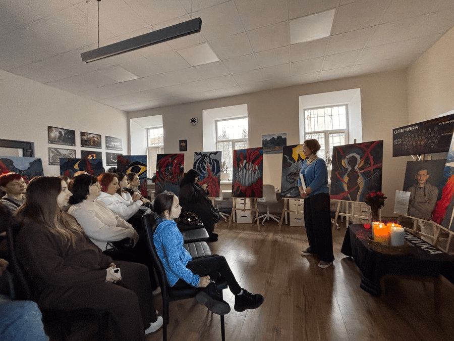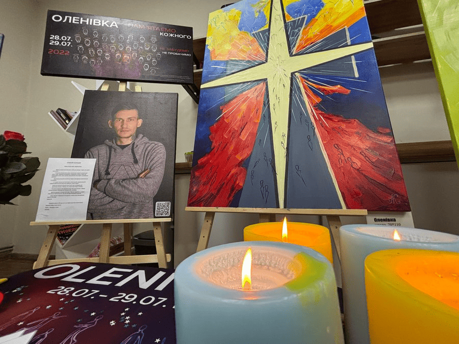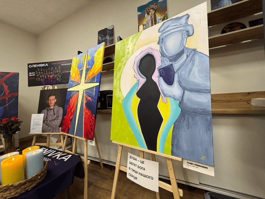 On December 6, the support space “Hart” in Kolomyia, Ivano-Frankivsk region, hosted the opening of the personal exhibition of paintings by Hanna Kisilishyna, the mother of a fallen “Azov” soldier from Mariupol, titled “47.82846°N 37.71093°E.” The exhibition’s name represents the coordinates of barrack No. 200 in Olenivka, where Russian forces carried out a terrorist attack on the night of July 28–29, 2022. Among the prisoners of war killed was the artist’s son, Oleksii Kisilishyn.