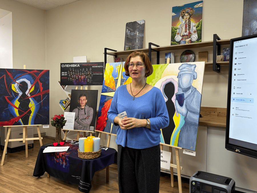 On December 6, Kolomyia hosted Hanna Kisilishyna’s exhibition “47.82846°N 37.71093°E,” honoring her son and other fallen soldiers, reflecting war, loss, and resilience through 13 paintings.