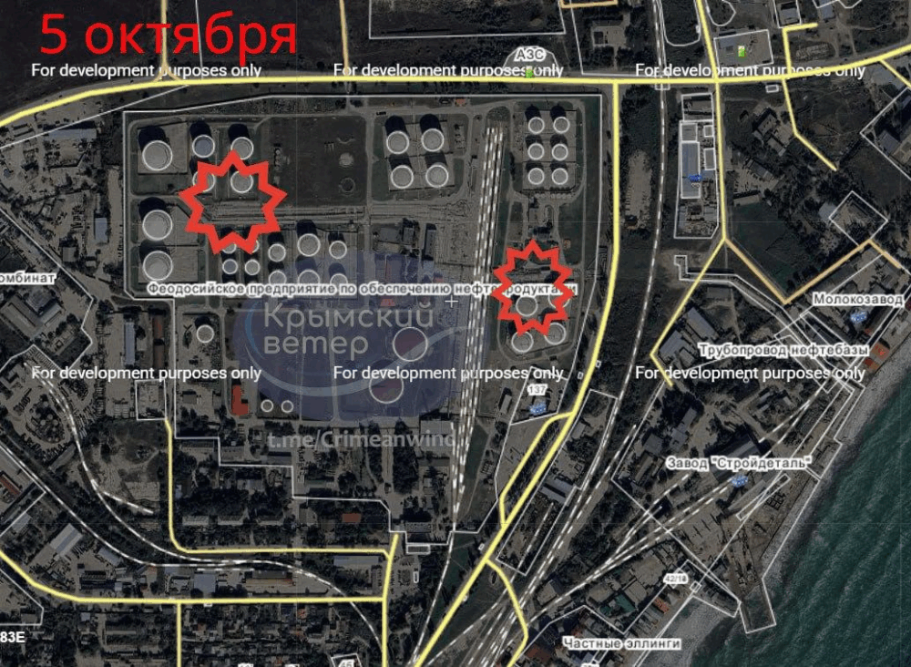 “On October 5, tanks in the northwestern and eastern parts of the oil depot were burning. Today, the storage tanks in the northern part of the facility are on fire,” the message reads.