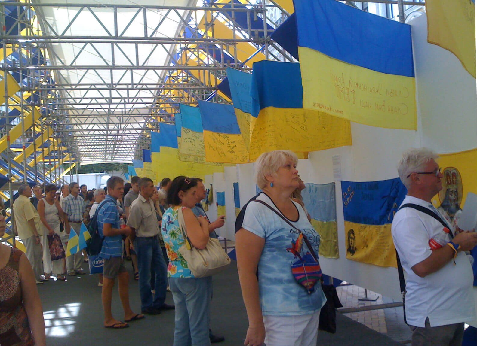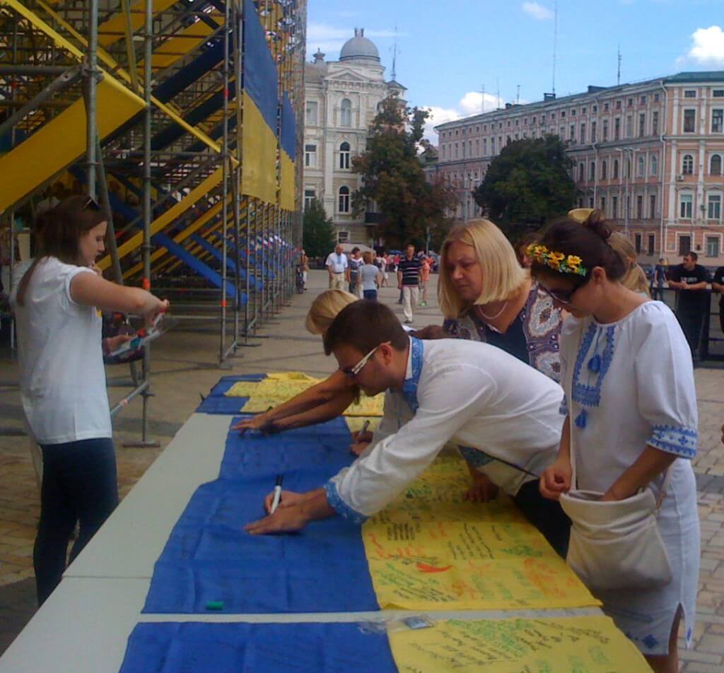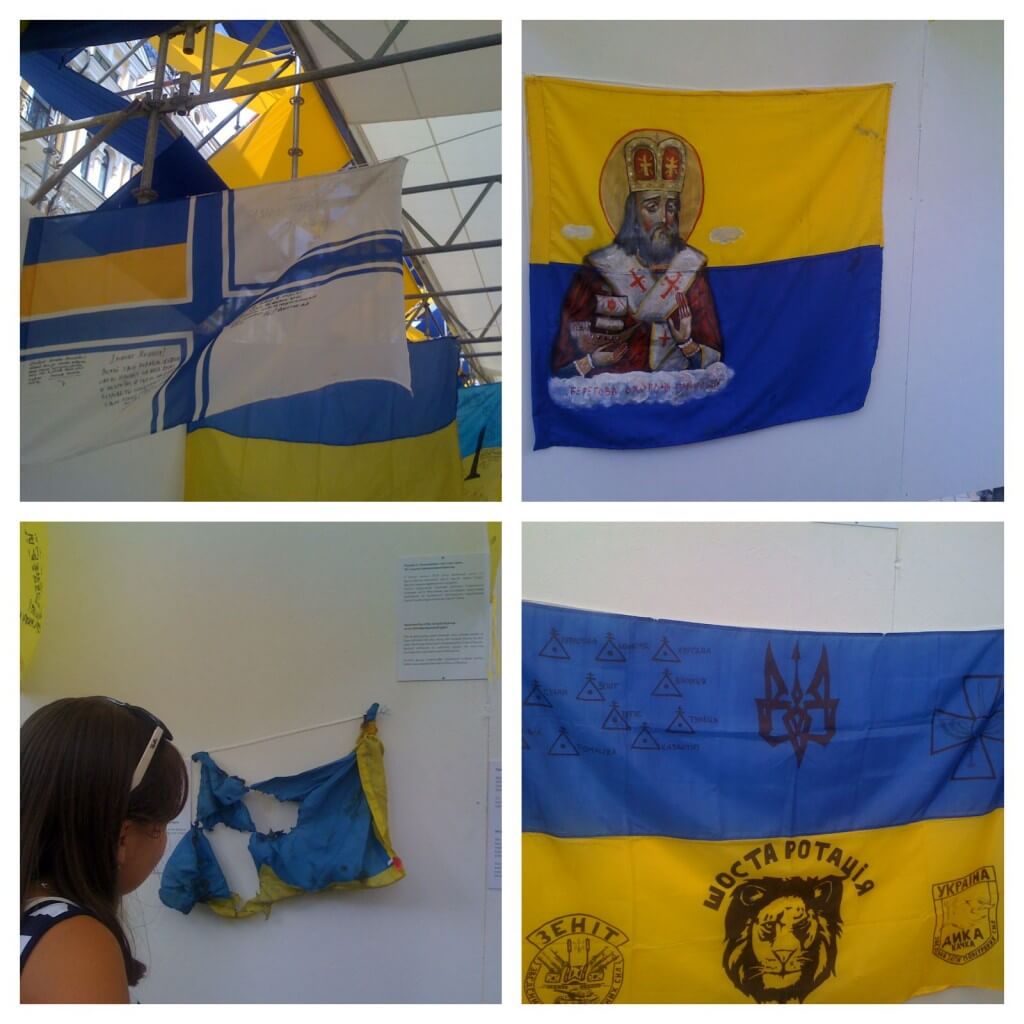 The exhibition’s visitors took their time thoroughly “reading” each flag. Many were moved to tears. A lot of visitors were enthusiastic and used the opportunity to leave their messages on the flags that, according to the exhibition staff are to be passed to Ukrainian servicemen in ATO.