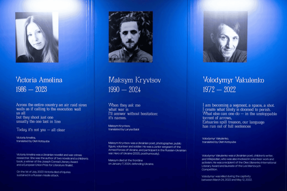 Among the main events of this year’s Ukrainian program is the poetic performance “Echo,” created in collaboration with the literary agency OVO and performed by Olena Herasymiuk and Pavlo Matiusha. The performance centers on ten poetic texts dedicated to artists who were killed or went missing.