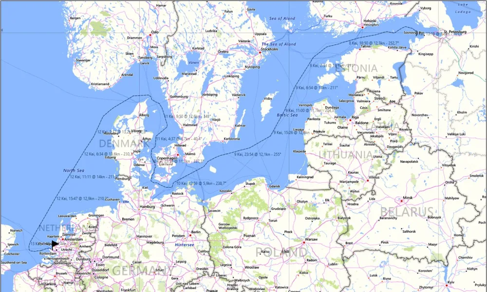 Two direct voyages of large crude oil tankers from Russian ports in the Baltic Sea to ports in the Netherlands and Italy: