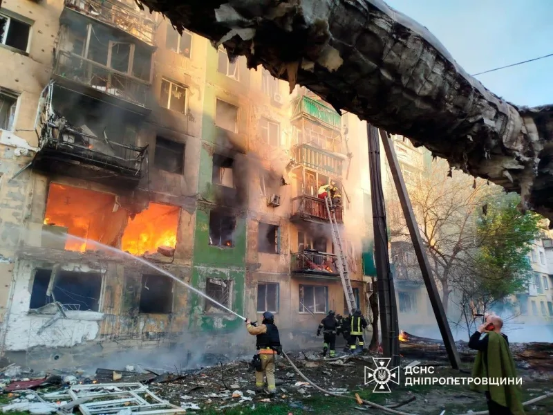 Fires broke out at enterprises in the Synelnyky and Samarivsky districts, as well as in a high-rise building in Pavlohrad. As of now, there are 3 dead and 6 wounded in the city, reports the head of the Regional Military Administration Lysak.