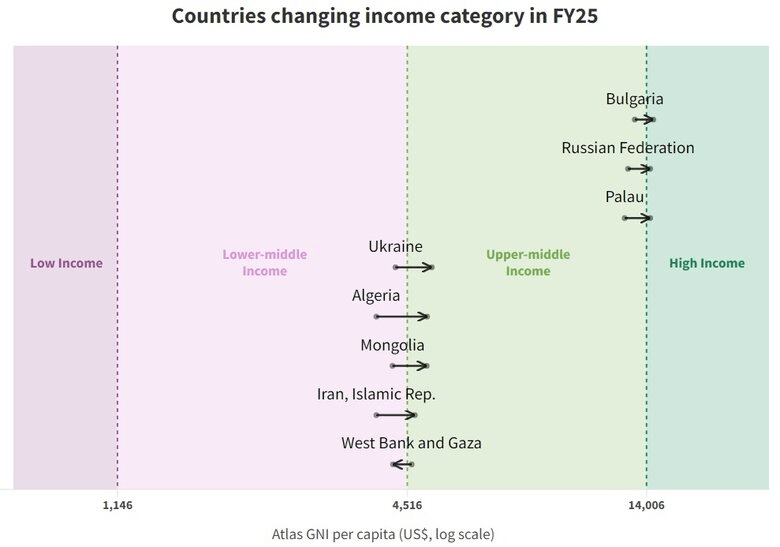 This year, Ukraine, Algeria, Iran, and Mongolia transitioned from the lower-middle-income category to the upper-middle-income category.