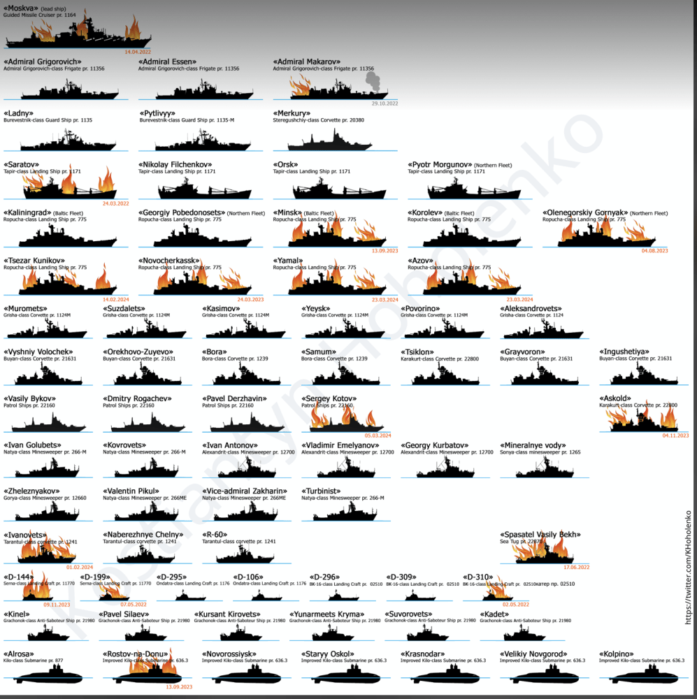 In general 7 out of 13 russian landing ships of all russian fleets were destroyed. Russia left 2 landing ships of the Black Sea Fleet, two landing ships of the Baltic fleet and two landing ships of the Northern Fleet.