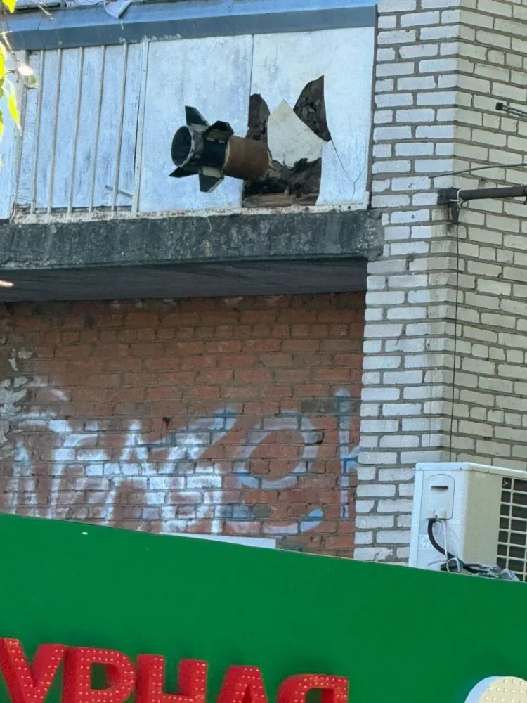 Local residents saw the missile in the building by morning. However, a pharmacy located in the damaged building stated that they had evacuated the night before. It was also reported that two powerful explosions were heard in Podolsk during the UAV attack. However, the fragment of the anti-aircraft missile on the balcony was noticed by locals around 10:00 AM. The booster block from the air defense system got stuck in the balcony of a building on Leningradskaya Street, 13/20.