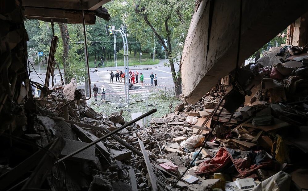 The State Emergency Service warned of the threat of a high-rise building collapsing after a Russian strike.