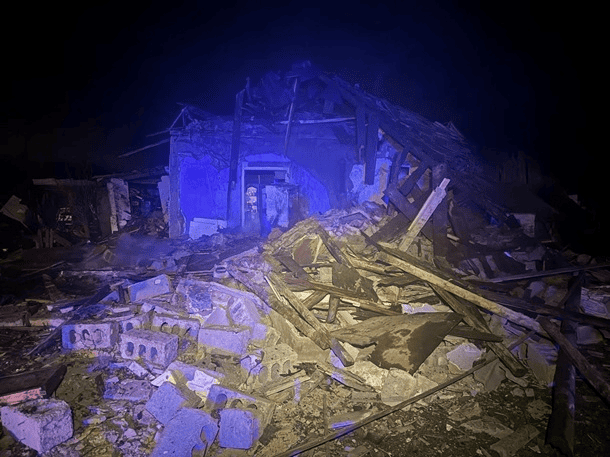 As a result of the Russian attack, outbuildings caught fire, and a private house, five two-story buildings, an administrative building, a cultural institution, and garages were damaged.