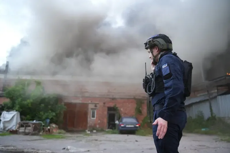 Oleh Syniehubov, head of the regional administration, wrote on his Telegram channel that a fire initially broke out at a civilian enterprise after the missile strike, damaging a single-story industrial building. A 30-year-old man was injured.