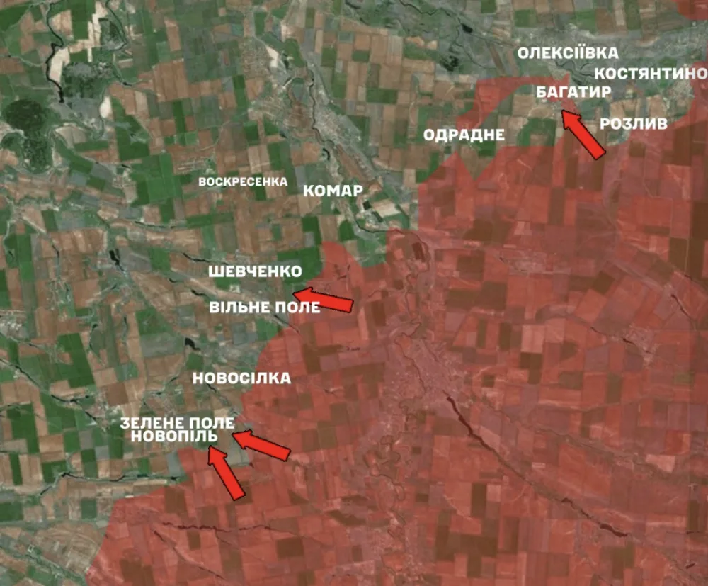 In the Novopavlivka direction, the enemy yesterday carried out twelve attacks in the areas of Horikhovo, Bahatyry, Zeleny Pole, Novopol and Vilny Pole.