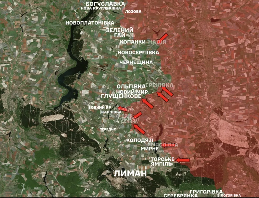 In the Lyman direction, the enemy attacked 22 times. It tried to advance towards the settlements of Hrekivka, Nadiya, Karpivka, Torske, Yampolivka and Zelena Dolyna.