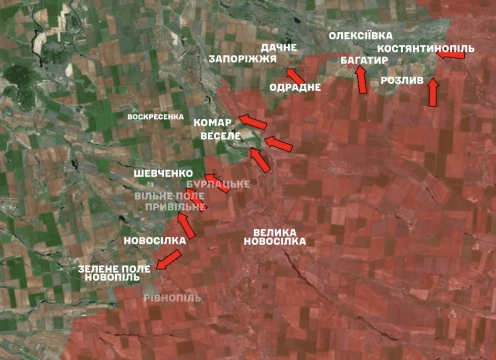 In the Novopavlivka direction, the Defense Forces repelled 35 enemy attacks near the settlements of Bahatyr, Kostiantynopol, Odradne, Komar, Vesele, Novosilka, Vilne Pole and Burlatske.
