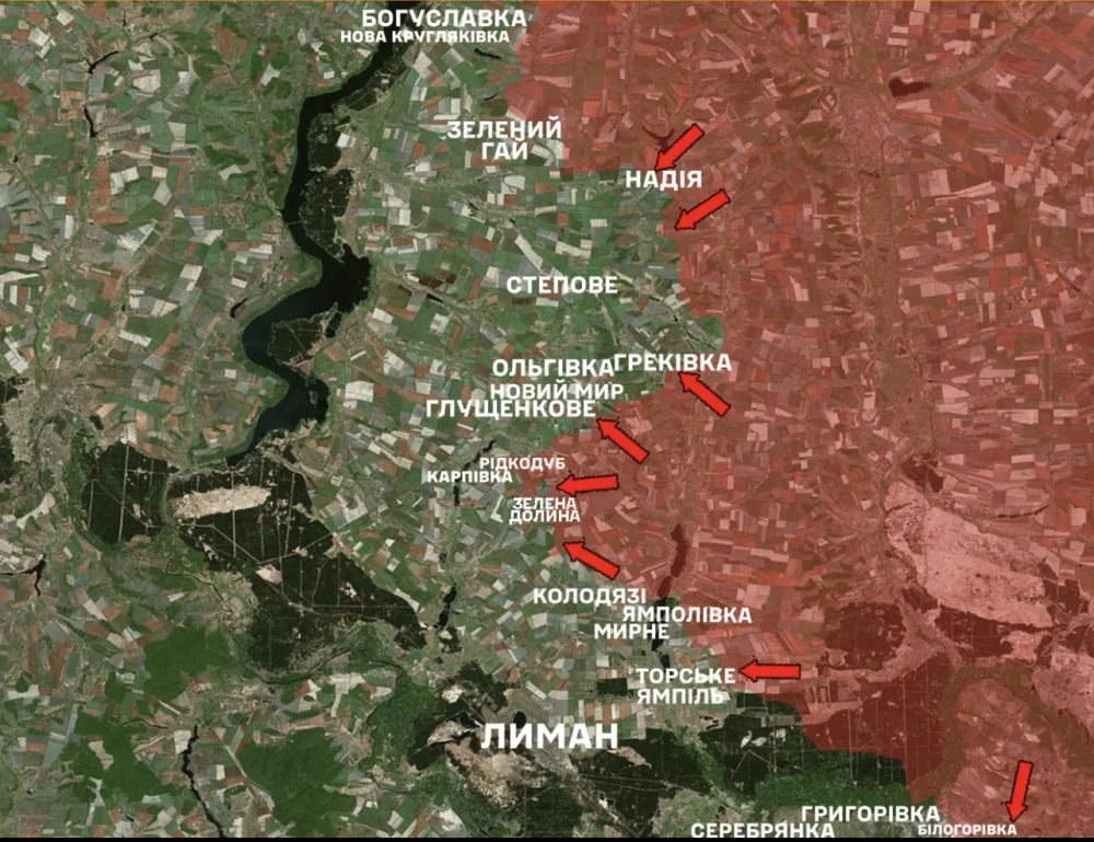 In the Lyman direction, the enemy attacked 22 times. He tried to advance in the areas of the settlements of Nadiya, Karpivka, Ridkodub, Yampolivka, Bilogorivka and towards the settlements of Olhivka, Stepovka, Grekivka, Novyi Mir, Andriivka, Zelena Dolyna, Torske.