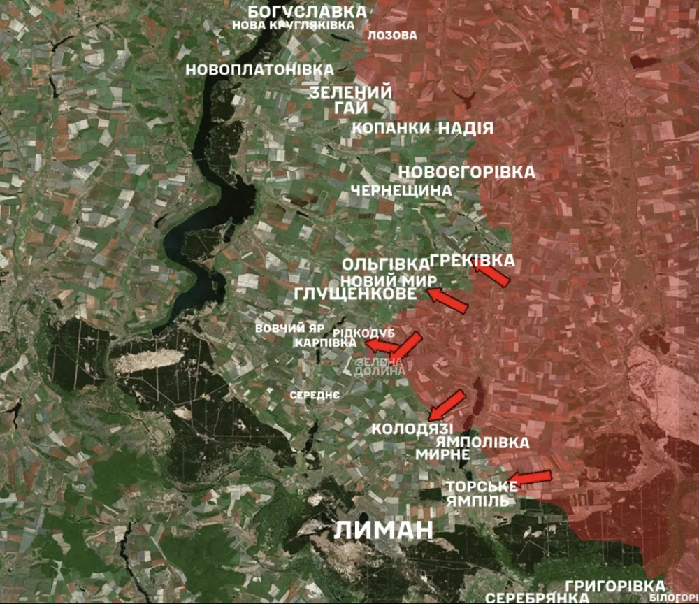 In the Lyman direction, the enemy attacked nineteen times, trying to advance near Kolodzyaz, Zelenaya Dolyna, Torske and towards Hlushchenkove, Olhivka, Srednye, Vovchy Yar, Cherneshchyna, Karpivka, Novy Mir.