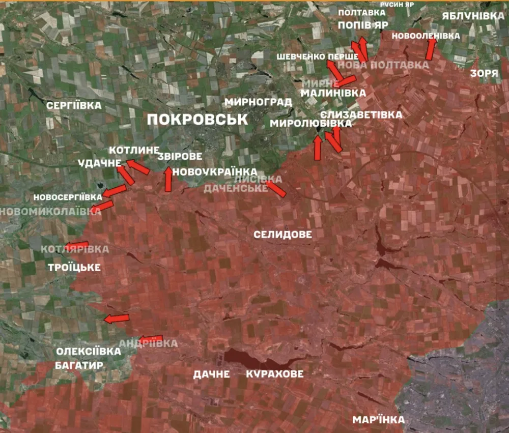 In the Pokrovskyi direction, our defenders stopped fifty-five attacks of the aggressor in the areas of Novaya Poltavka, Pokrovsk, Kotlyarivka, Novoukrainka, Andriivka, Novoolenivka, Zvirovka, Malynivka, Yelizavetivka, Myrny, Lysivka, Udachny, Novoserhiivka and towards Myrolyubivka and Novomykolaivka.
