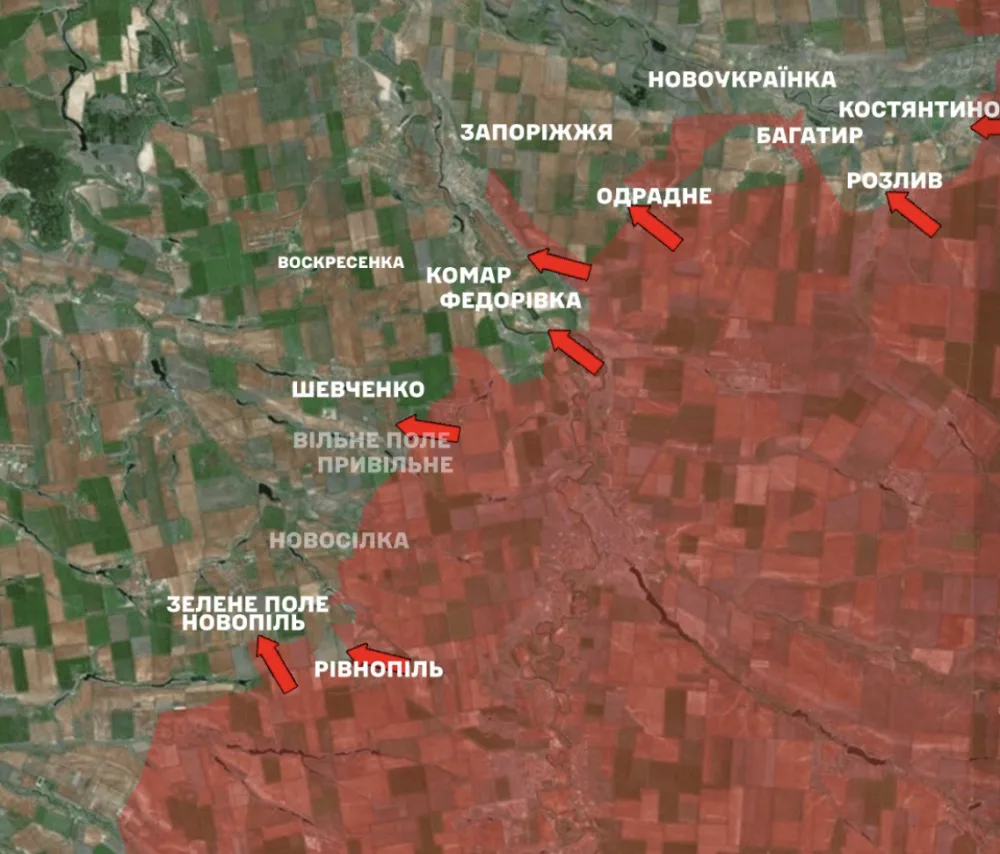 In the Novopavlivka direction, the Defense Forces repelled thirty-two enemy assaults in the areas of Fedorivka, Konstantinopol, Rivnepol, Vilny Pole, Zaporizhzhia and towards Zeleny Pole, Novopol, Shevchenko, Komar and Bahatyry.