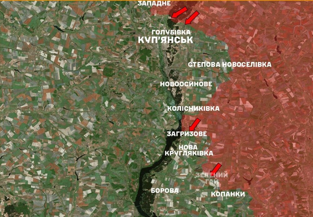 In the Kupyansk direction, the aggressor carried out offensive actions in the areas of the settlements of Holubivka, Kindrashivka, Kolodyazi, Zagryzove, Zelenyi Gay and in the direction of Kupyansk. Ukrainian defenders stopped eight enemy attacks.