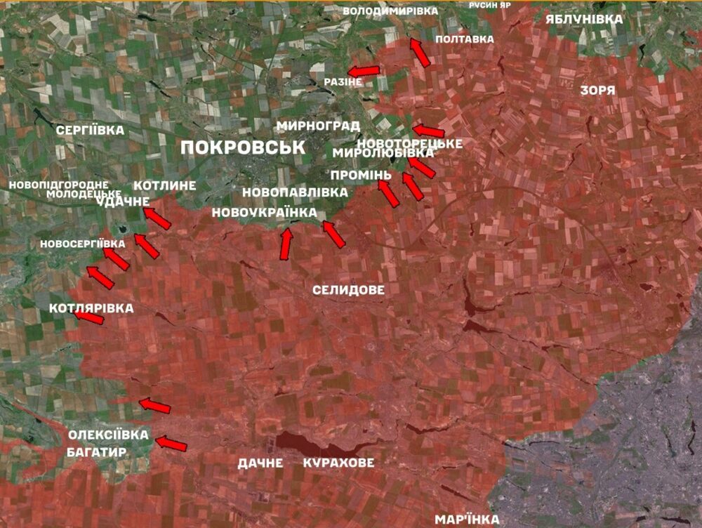 - and toward Volodymyrivka, Serhiivka, and Pokrovsk