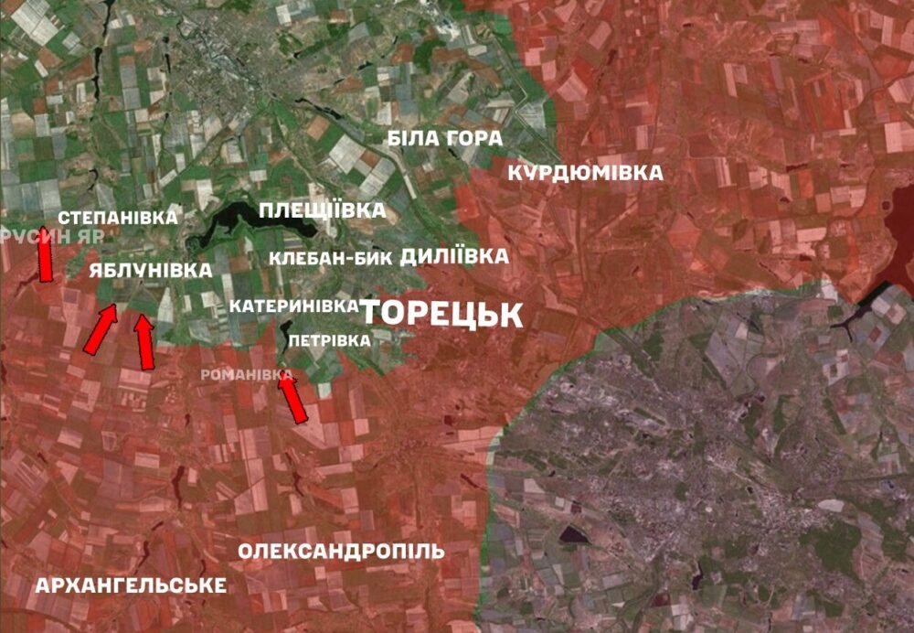 - Toretsk direction: The enemy conducted 2 assaults near Toretsk and Rusyn Yar. One battle is ongoing.