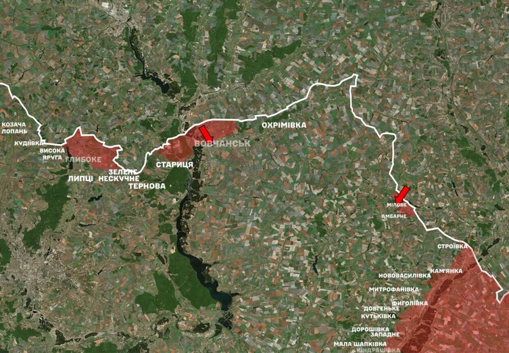 - Vovchanski Khutory, Vovchansk, Odradne, Okhrimivka, Zybyne, Prykolotne, Khatne (Kharkiv Oblast)