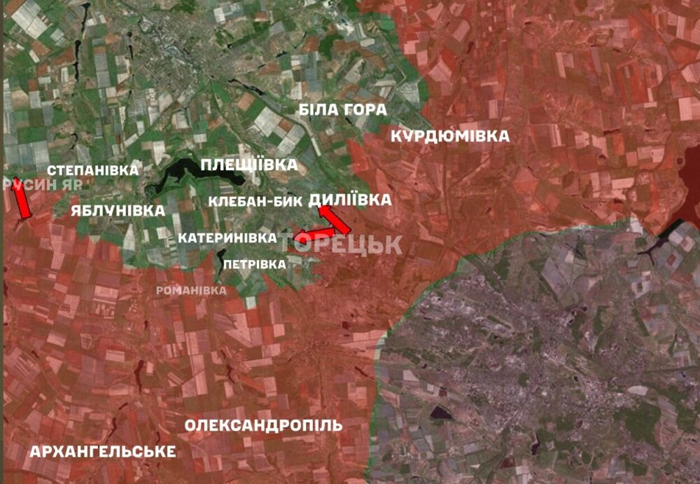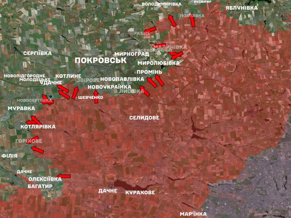 - and toward Volodymyrivka, Serhiivka, Filiia, and Pokrovsk.