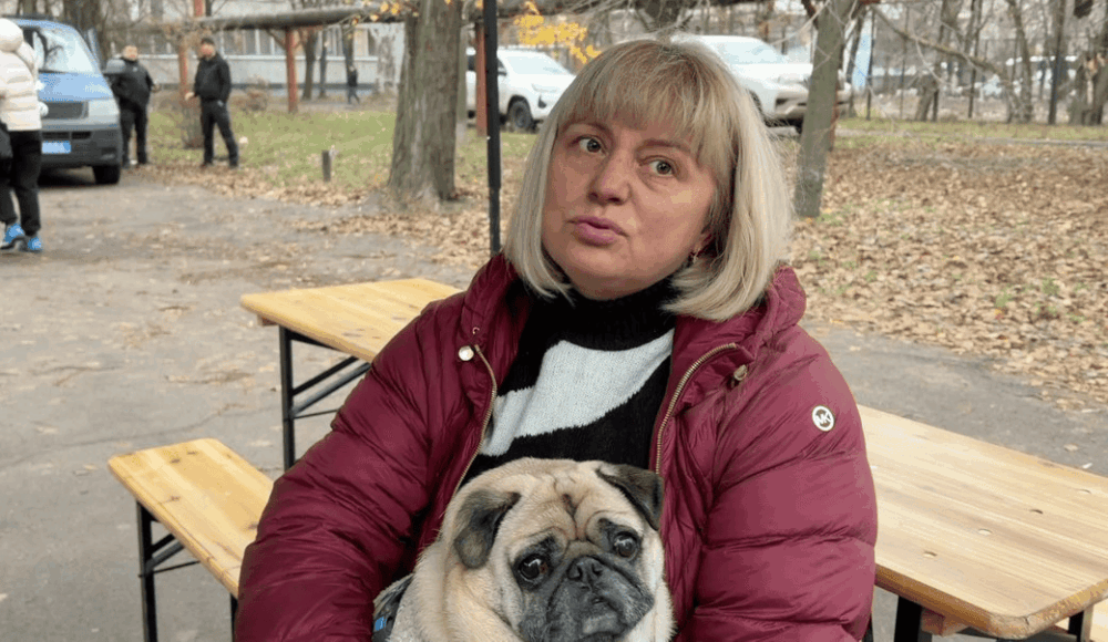 Irina, an employee of one of the destroyed automobile repair shops, said she was at work with her dog during the missile strike.