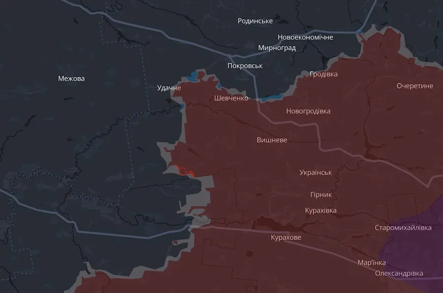 According to Realna Gazeta, the Ukrainian analytical project DeepState claims that the army of the aggressor country, Russia, has allegedly advanced near Pokrovsk in the western part of the Donetsk region.