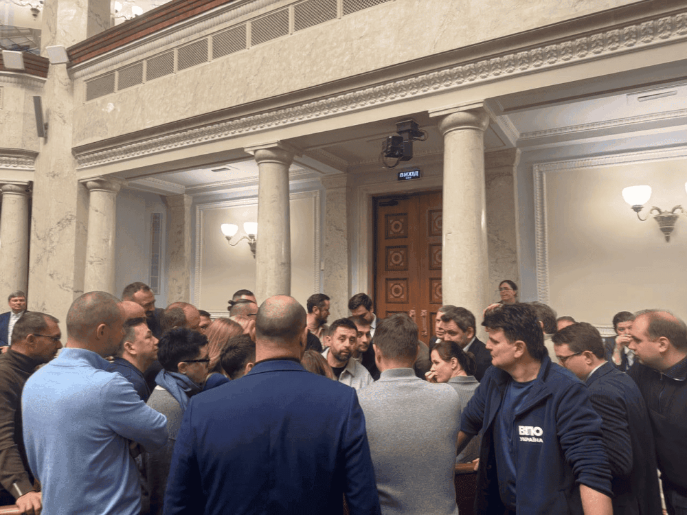 Members of the “Servant of the People” faction around the center of the conspiracy — Davyd Arakhamia, Verkhovna Rada, November 19, 2025. Photo: Yaroslav Zhelezniak, Telegram