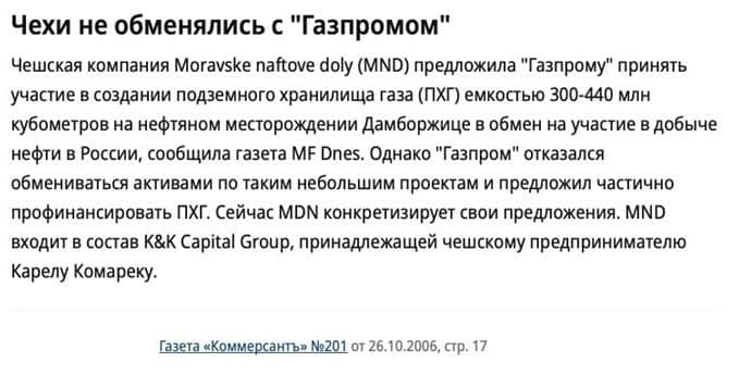 The oil complex was built by the energy group “ITERA,” which, among other things, operated the Druzhba pipeline and, during the 2010s, lost its market positions. As a result, its assets were absorbed by Gazprom and Rosneft. It is most likely that it was through cooperation with Gazprom that Komarek managed to acquire this asset. The acquisition of an asset in Russia can also explain MND’s partnership with the KHL (Kontinental Hockey League), mentioned in the «Mirror of the week» article.