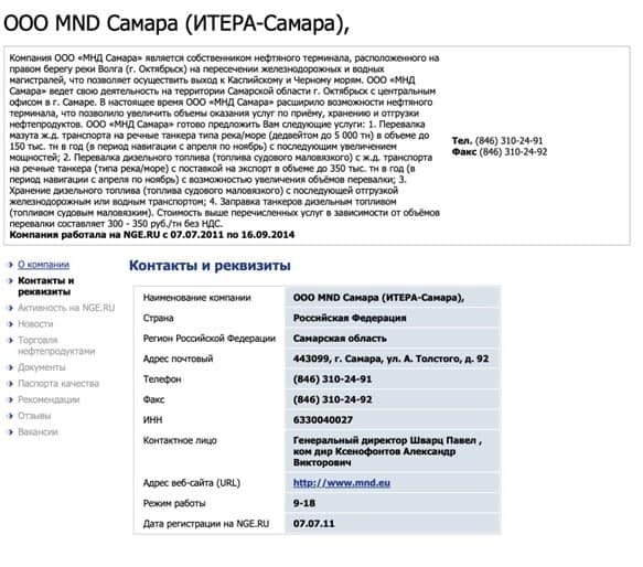 Historical records in the Russian registry for this complex list the website and email addresses of Komarek’s MND oil and gas holding. It is also known from the registries that until 2022, the owner of this Russian firm was an offshore company from the Netherlands, MND Samara Holding BV.