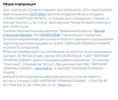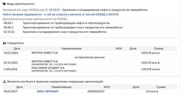 At the end of 2022, the formal owner of the oil complex changed to the same offshore company from the Netherlands, registered at the same address as MND Samara Holding BV. This indicates that Komarek is likely still the owner of this critical asset. The importance of this will become clear later.