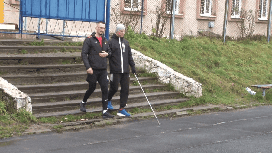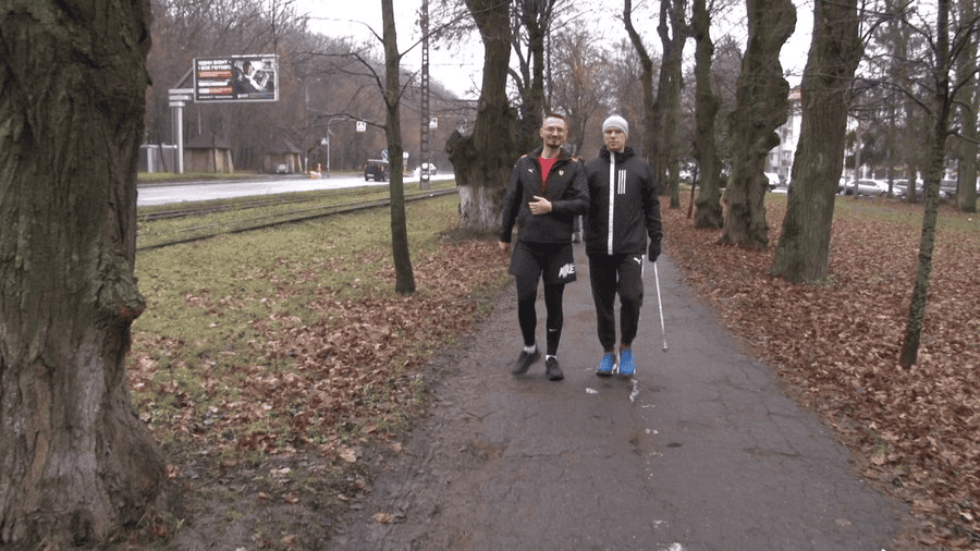 The veteran trains together with a guide and psychotherapist Maksym Marunkevych. Sessions take place once a week, using a special tape that helps maintain distance and movement synchronization. Already, Artem is covering distances of up to 10 kilometers.