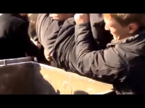 Starving Torez residents protest against Russian intervention in Ukraine blocking the road during a rally in occupied Donetsk oblast of eastern Ukraine.