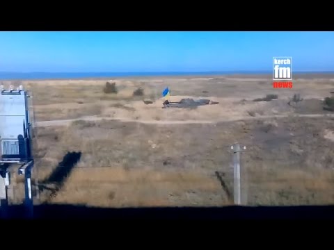 Russian tanks shipped to Crimea before illegal referendum via seized key port Kerch ferry and seized Ukrainian railroad of the Crimean peninsula