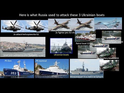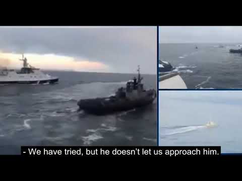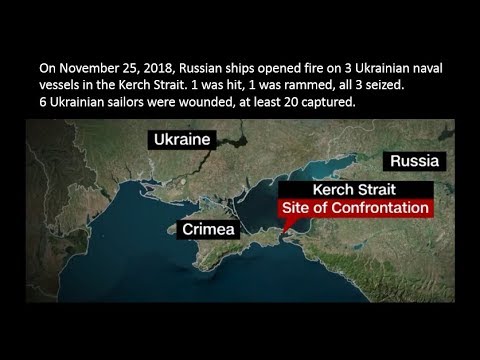 Russian forces open fire on a group of Ukrainian ships in the Black Sea off the coast of the Crimean Peninsula near the Kerch Strait late on November 25, 2018, striking two warships and wounding 6 crew members before seizing the vessels along with a Ukrainian Navy tugboat